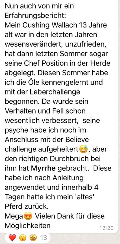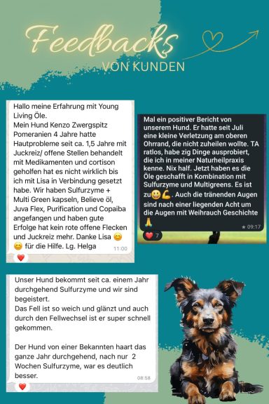 Erlebe die Reinheit und Wirksamkeit dieser Öle und unterstütze das Wohlbefinden deiner Tiere ganzheitlich. Eine Chance, die du nicht verpassen solltest! Schreib mir gerne.